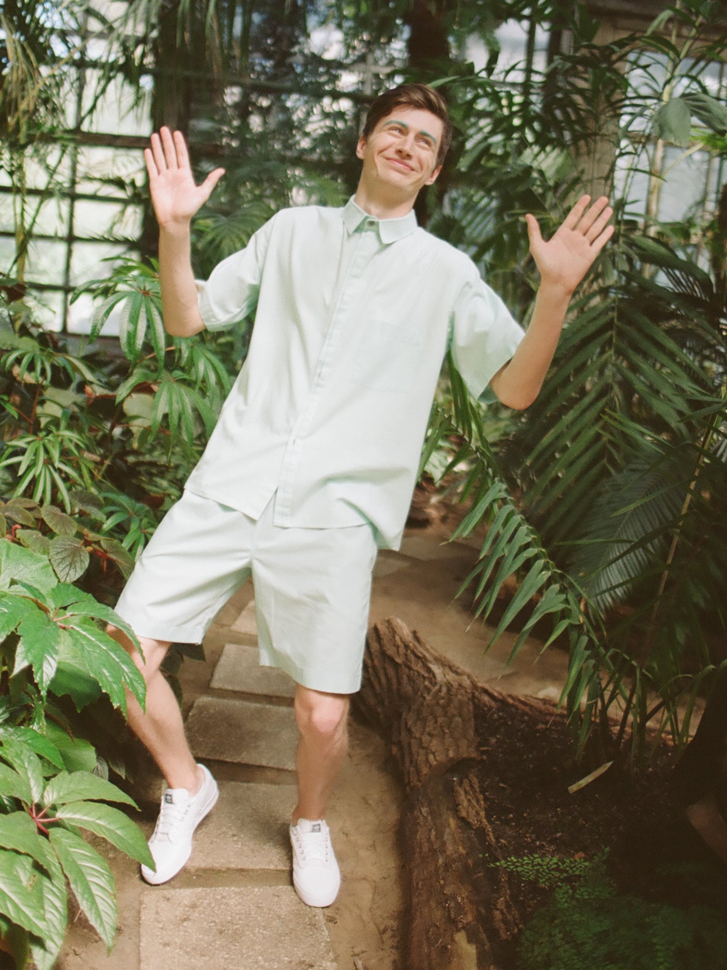 قميص أخضر مصمم لكلا الراحة والأناقة