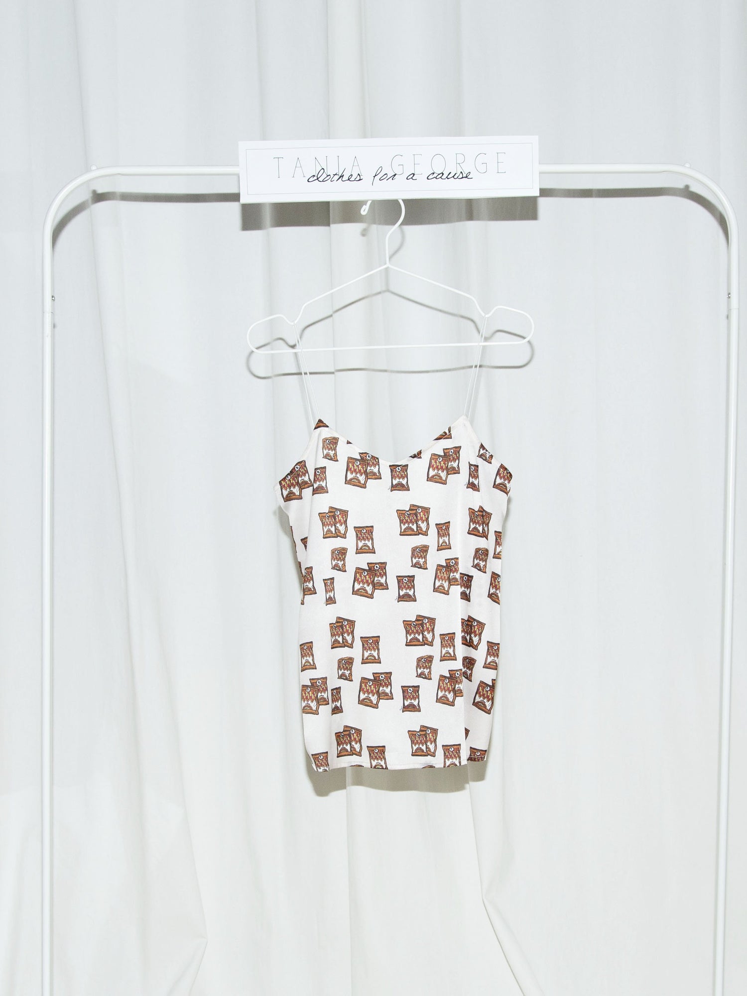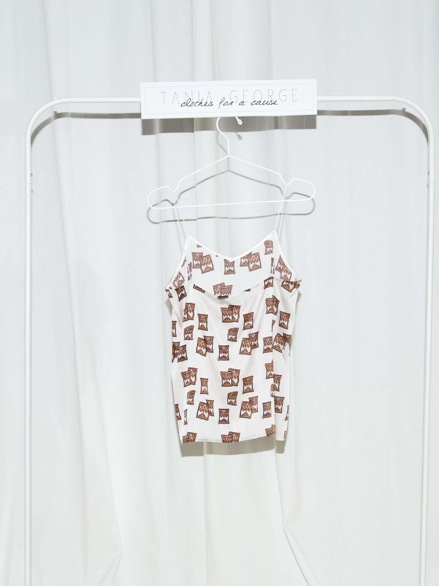 Easy, breezy and silky. This cami hangs lightly on the body allowing for the ultimate level of comfort with the iconic Bushar print