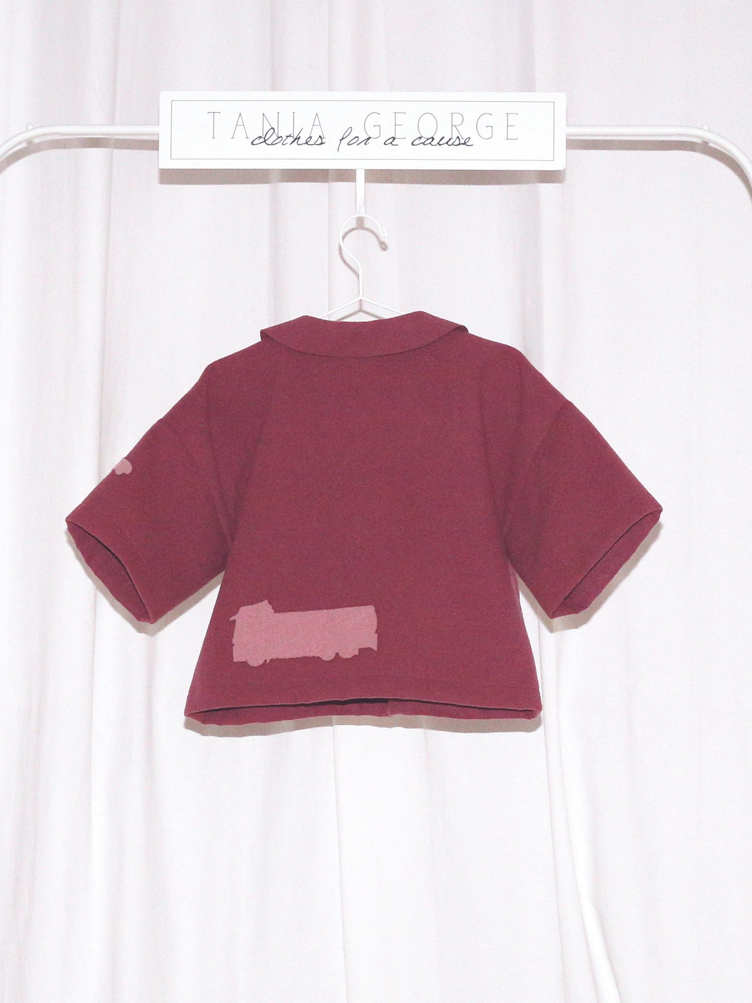 Crop tops for the winter do exist! This wine collared top has the car sticker designs printed on it