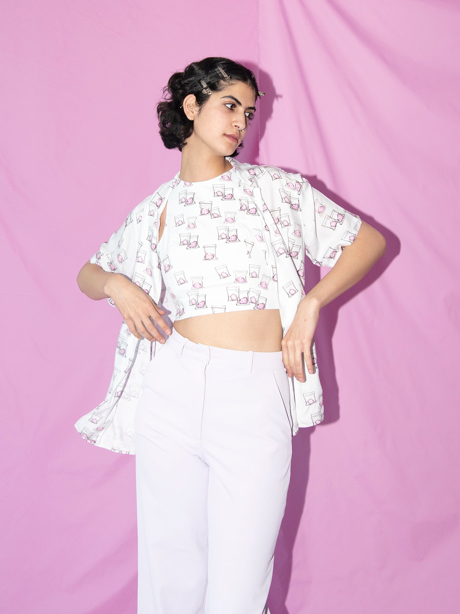 بلوزة تانيا جورج الايقونية مع طباعة شعر البنات. قصتها مريحة وثابتة على الجسم
