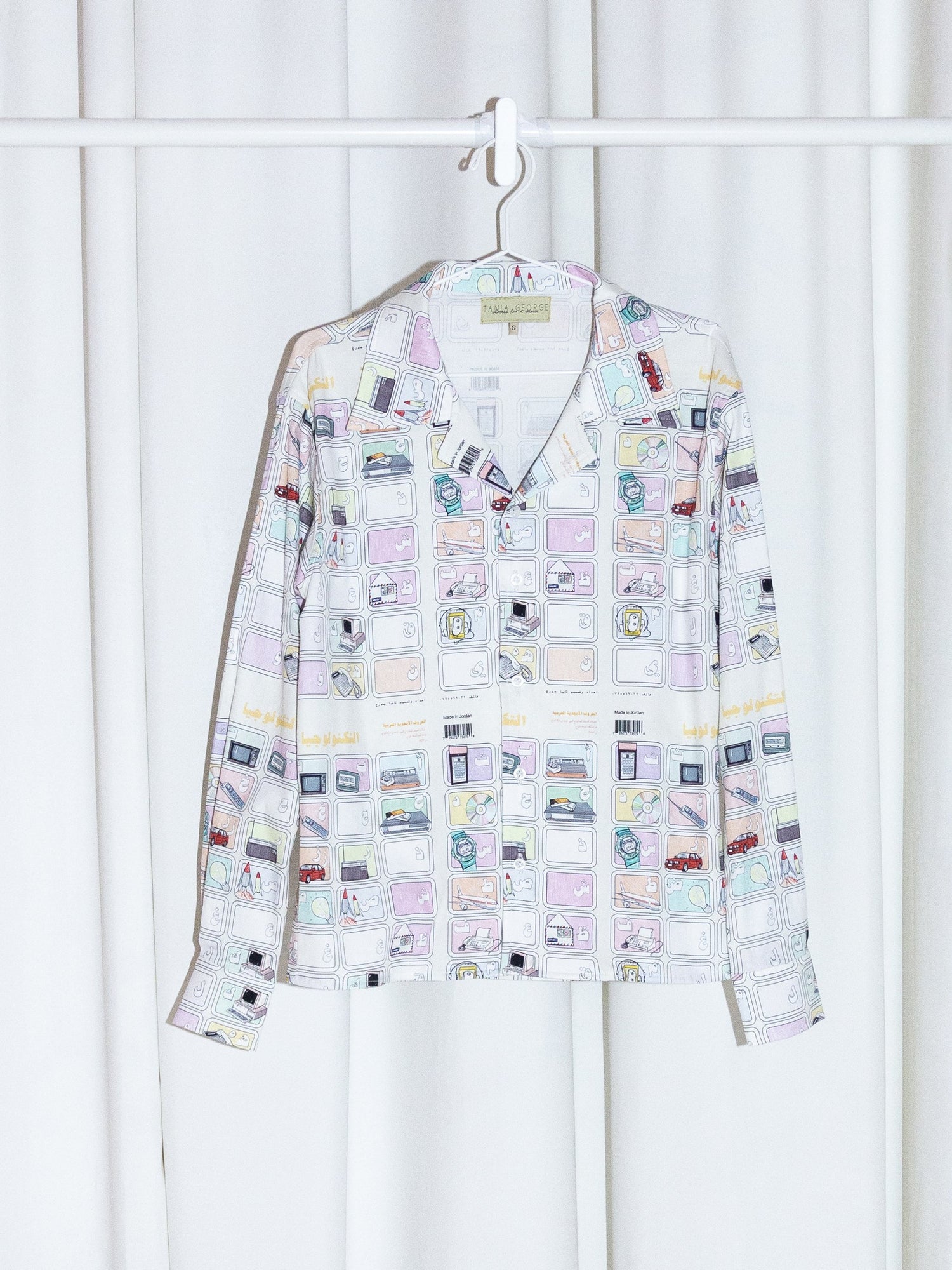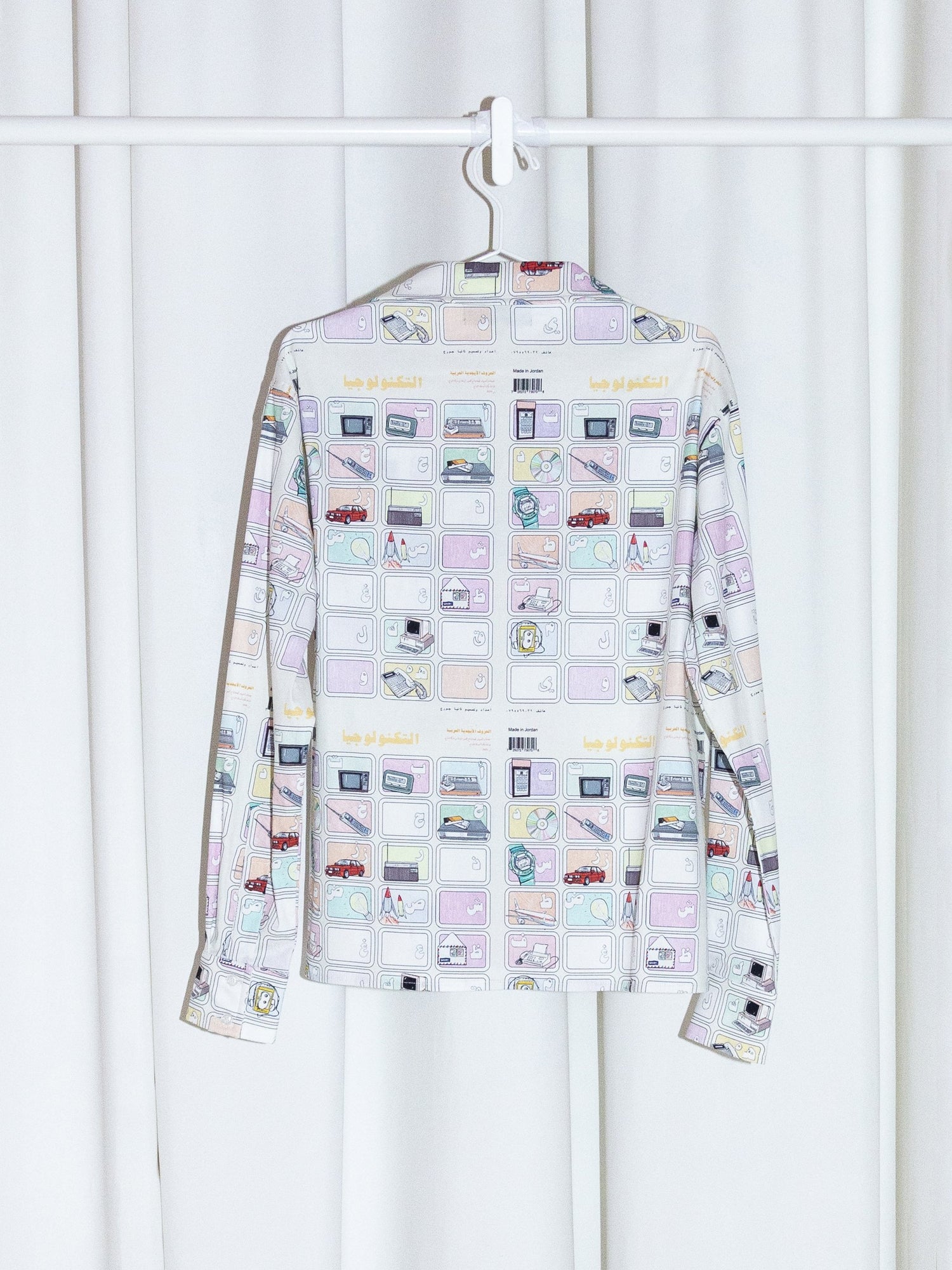 Cropped long sleeve shirt with the nostalgic Alphabet print. The perfect transitional piece from summer to fall.