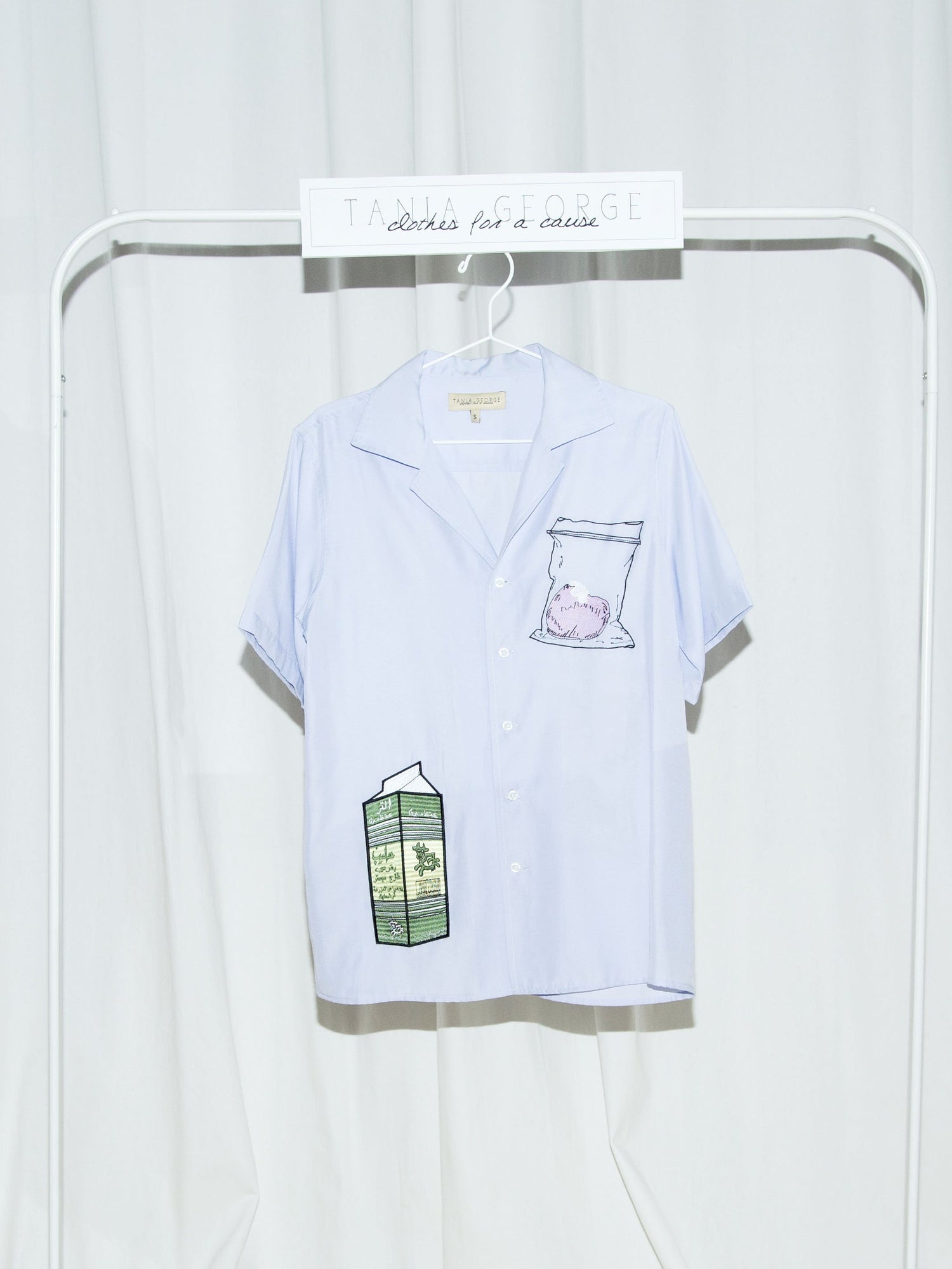 A short sleeve shirt with hand embroidered prints done by the traditionally skilled tailors of Amman