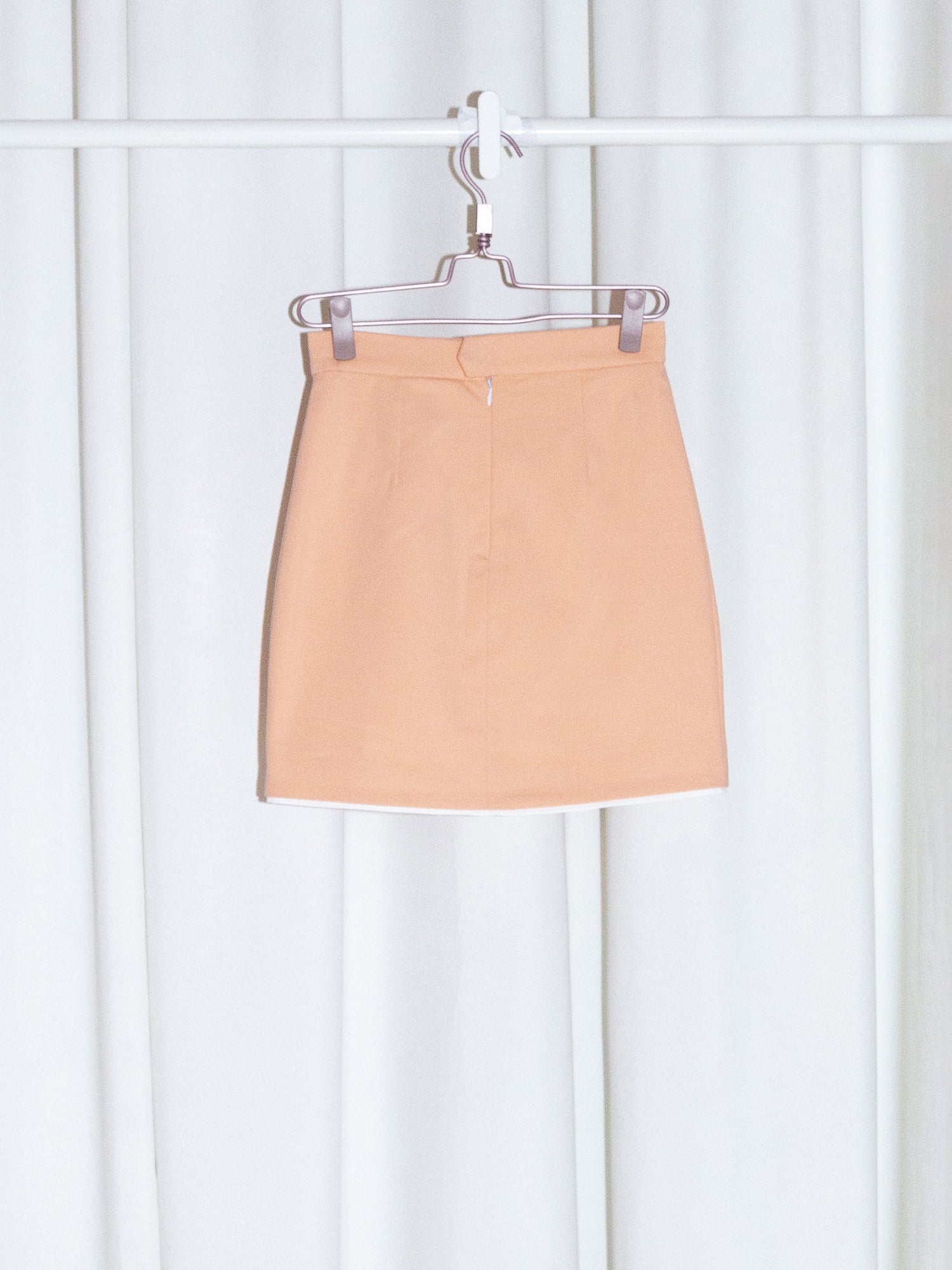 The ultimate basic skirt tailored with perfection with white piping along the edges.