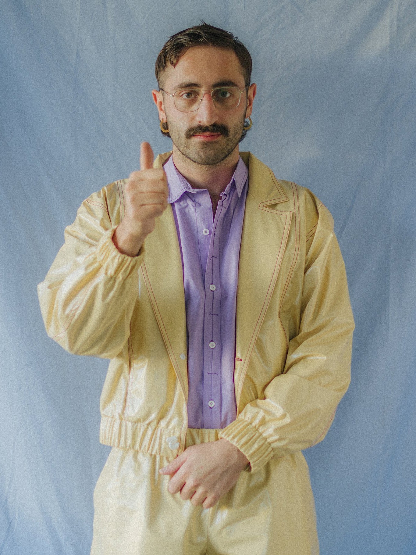 Faux leather pastel yellow jacket for when you want to be cool but still have a pocket full of sunshine.