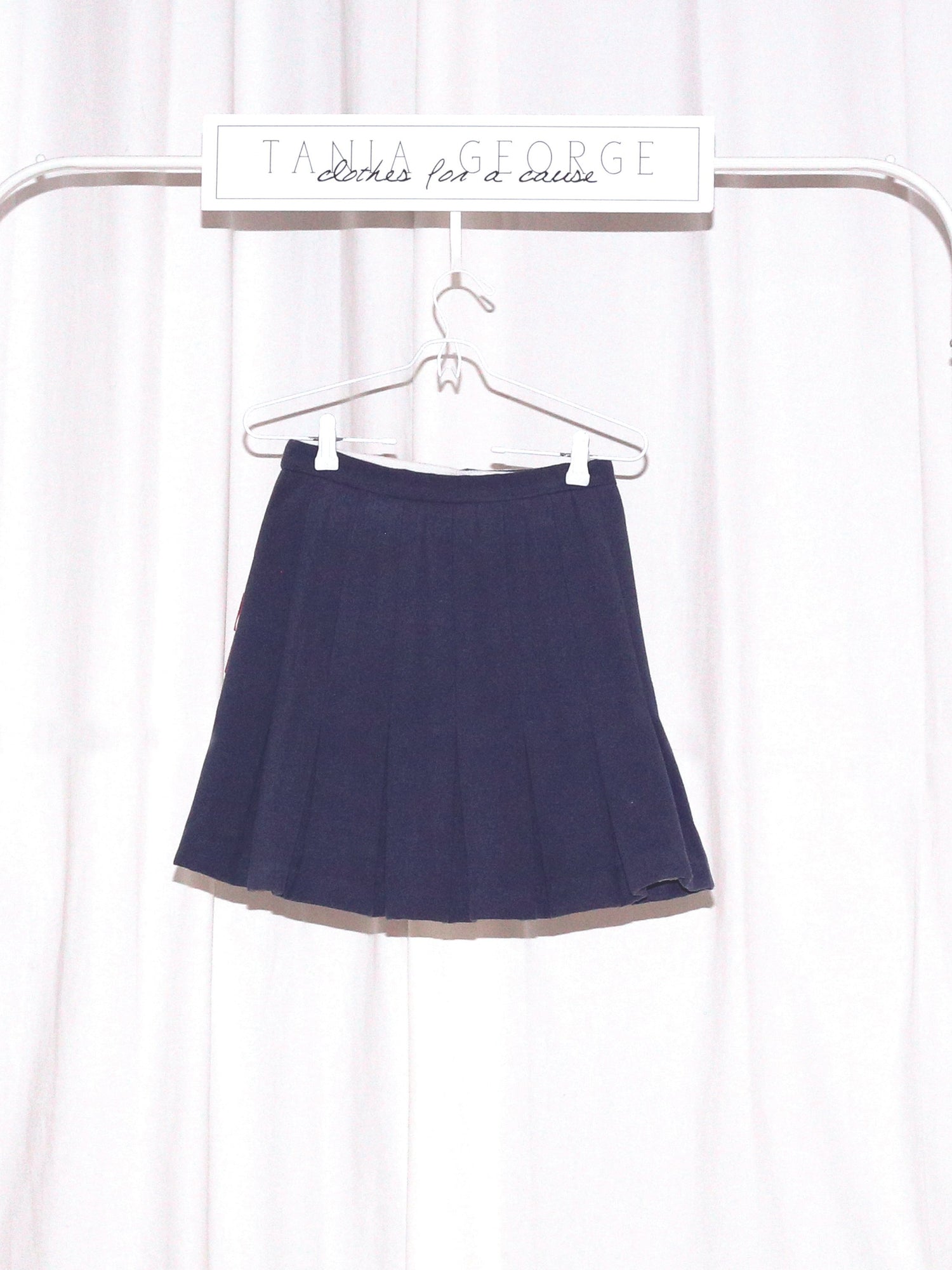 When you can't decide between a dark or a light look... go for both! This wool skirt has a navy side and a checkered white and red side
