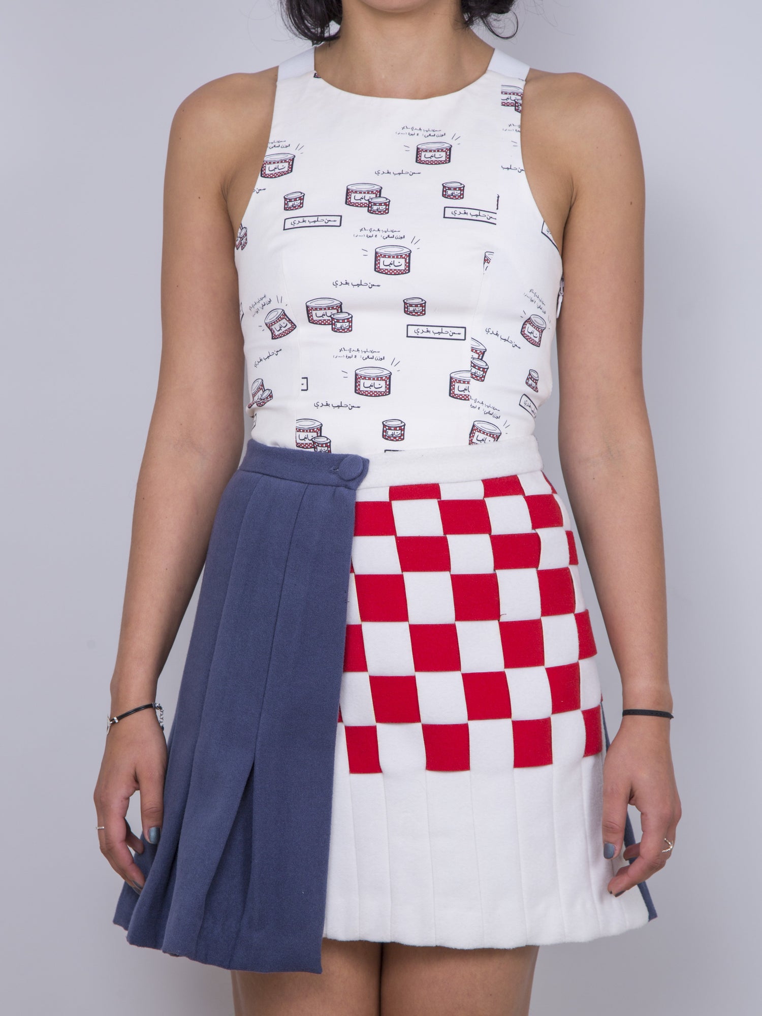 عندما لم تستطيع الخيار بين اللبس الغامق أو الفاتح، إختار الإثنين! هذه التنورة الصوف لديها جانب كحلي و جانب مربعات بالاحمر و الأبيض